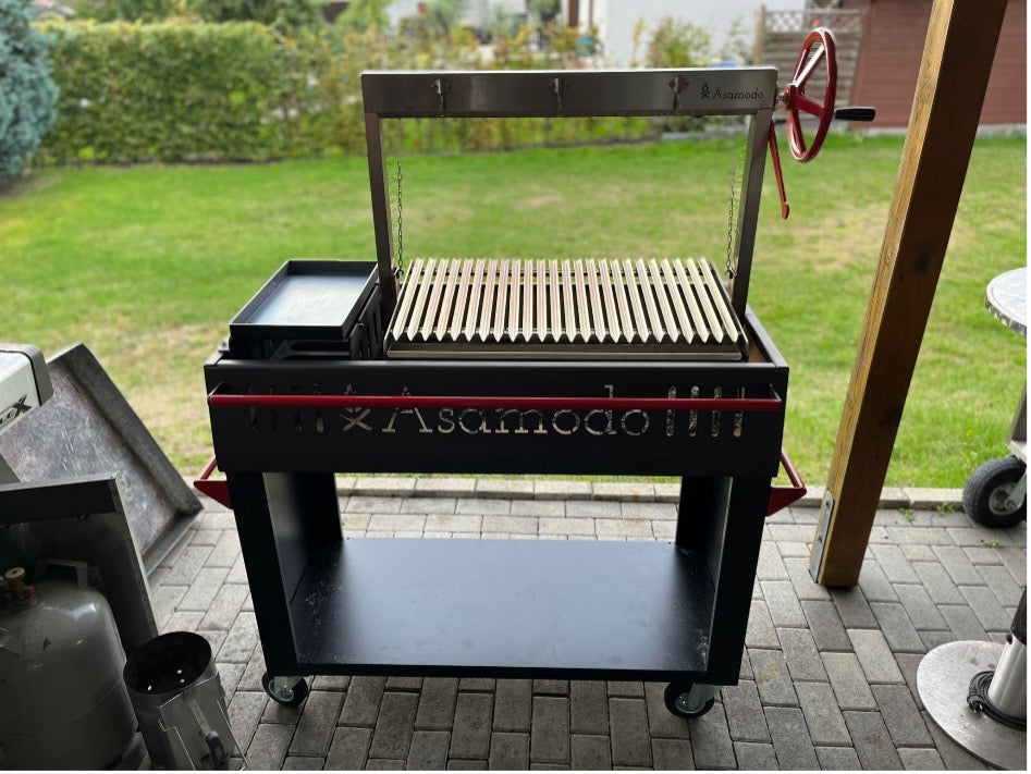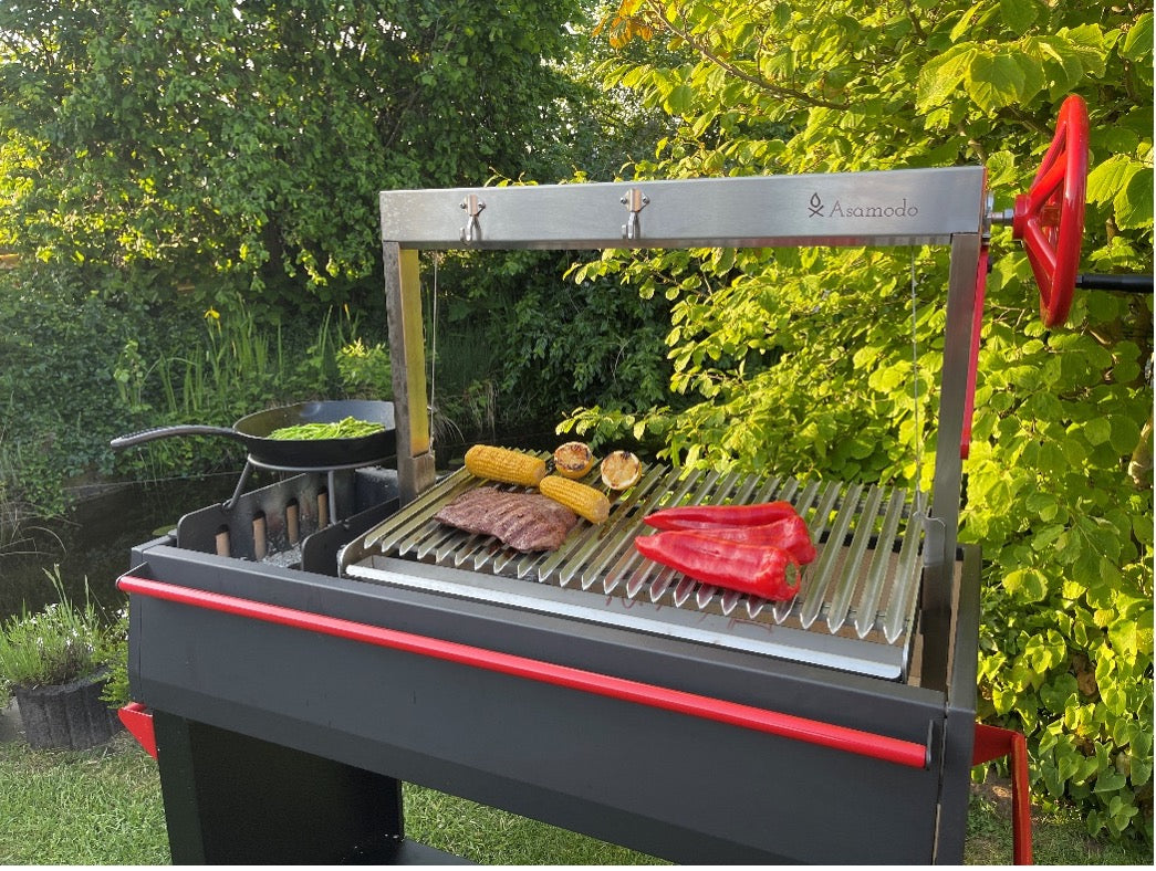 The Asamodo Brasa charcoal grill is the epitome of quality and functionality for grill enthusiasts. With its robust 2 mm thick steel housing and an adjustable height frame, this Asado grill is perfect for any outdoor grilling evening.