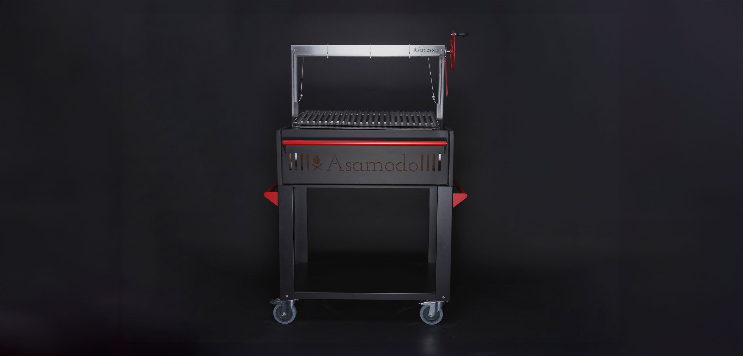 Telaio regolabile in altezza e sistema modulare di griglia con canalina per la fuoriuscita del grasso per una grigliata senza fumo. E per non disturbare i vicini nemmeno durante l'accensione, aggiungiamo un Looftlighter per accendere la carbonella senza fumo. Sei pronto per un Asado sul balcone?