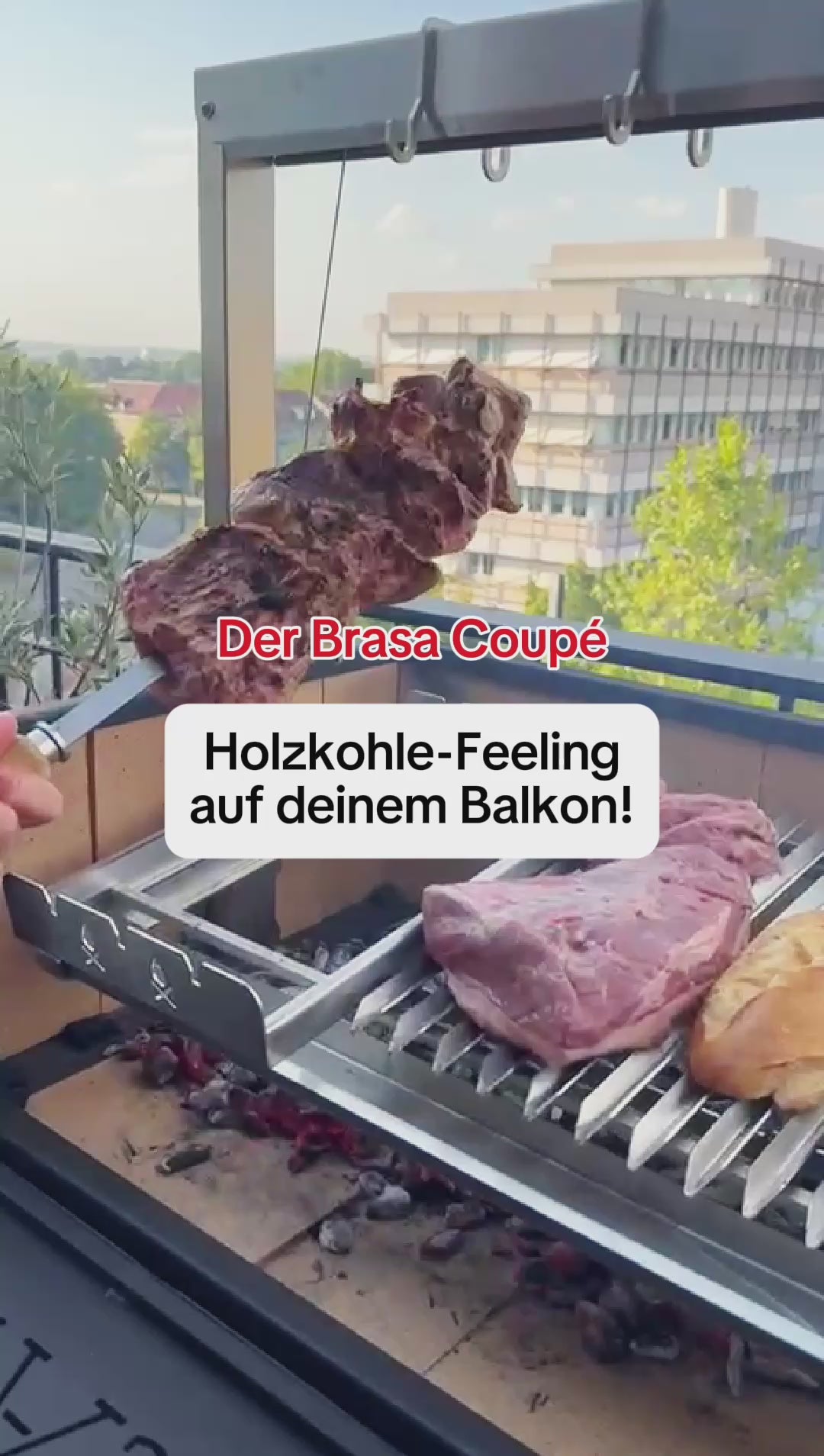 Il Brasa Coupe consente di risparmiare spazio rinunciando al brasero (cesto per il fuoco). Perfetto per le grigliate a carbonella sul balcone o sulla terrazza.