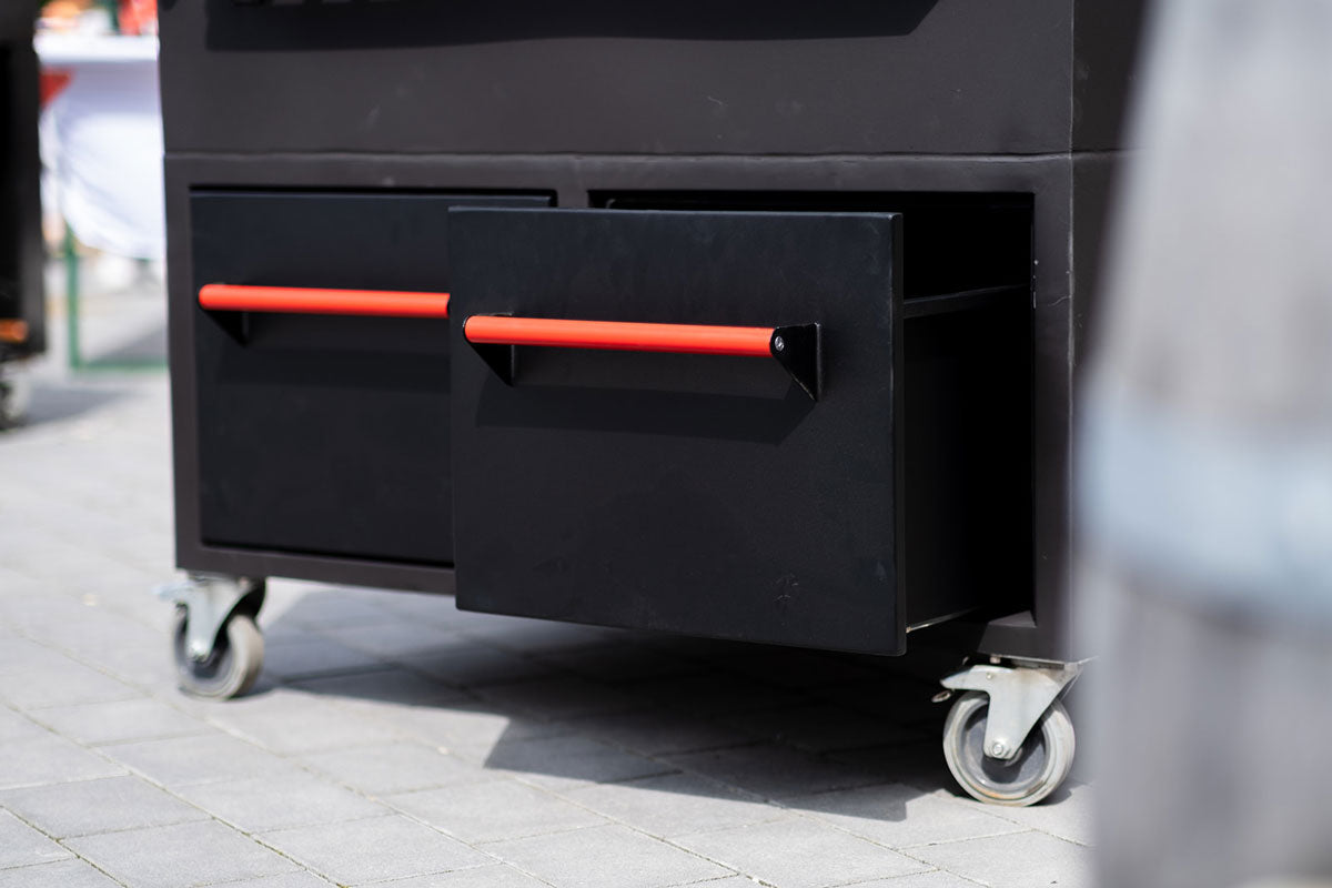 Due cassetti con funzione soft-stop nella parte anteriore del cubo offrono un ampio spazio per riporre accessori, cibo per il barbecue o altro materiale.